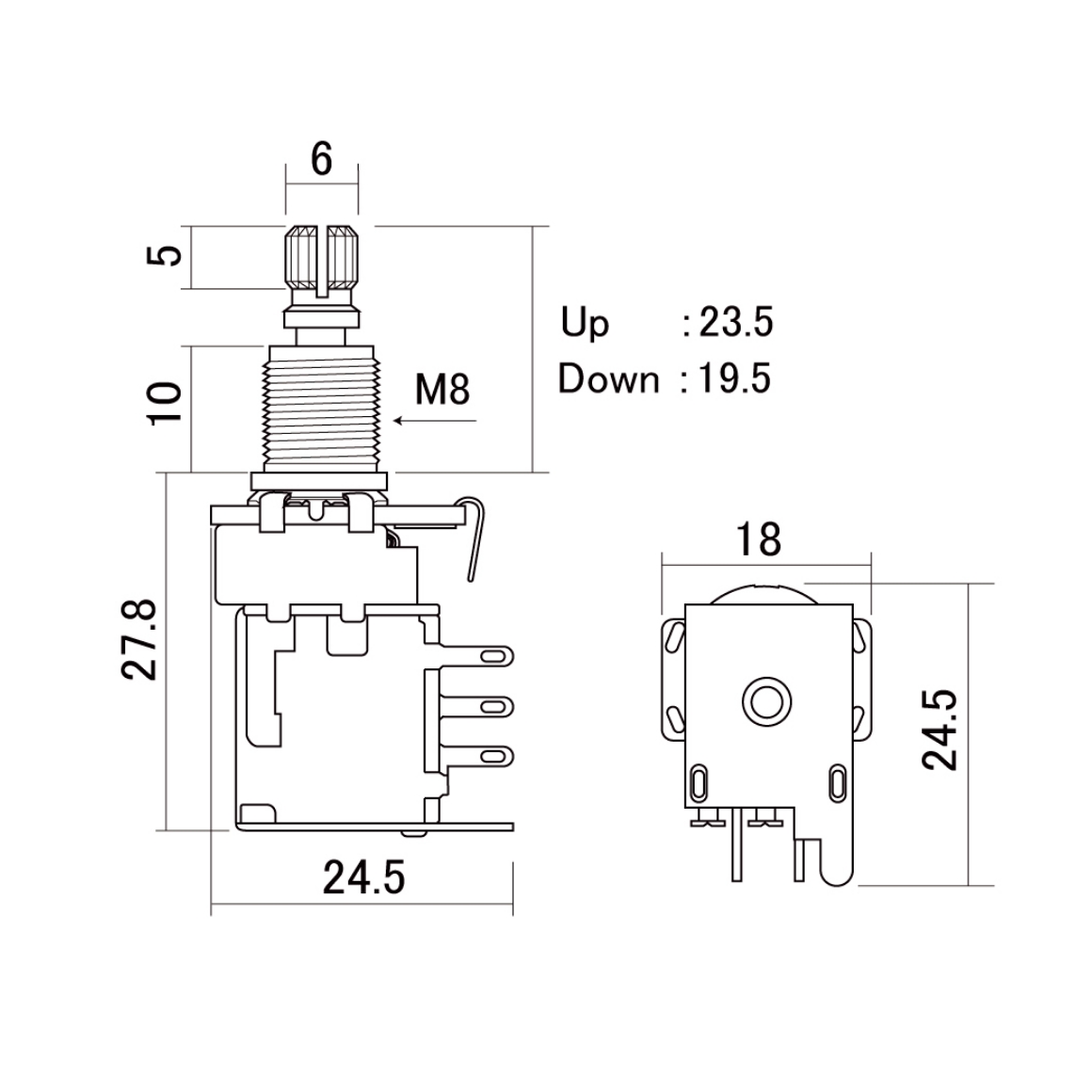 Ποτενσιόμετρο Push-Push B500K για Ηλεκτρική Κιθάρα με μήκος σπειρώματος 10mm.